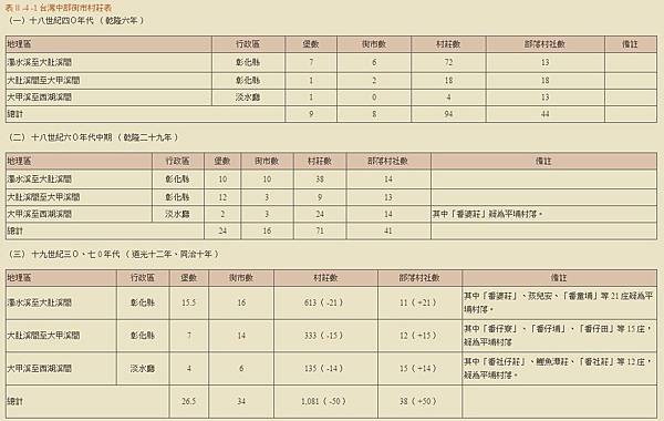 表 Ⅱ -4 -1 台灣中部街市村莊表