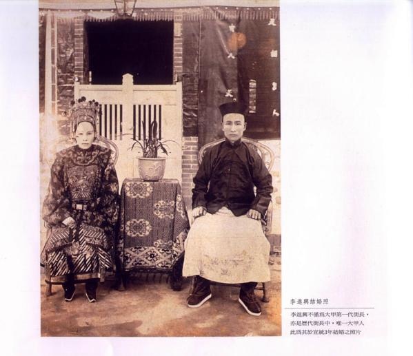 中央研究院臺灣史研究所檔案館(以下稱為本館)收藏由清水蔡家後人所捐贈的一系列蔡蓮舫文書,其中包含珍貴的臺灣早期嫁娶行列系列照片。1912年4月27日,板橋林家林祖壽與清水蔡蓮舫女兒蔡嬌霞結婚時拍攝的照片中顯示,蔡嬌霞身穿傳統中國嫁衣及霞披、頭戴鑲有珠簾的鳳冠,林祖壽穿戴清代長袍馬褂官服。一般說來,兩人的服飾裝束其實是九品命官、命婦的穿著,命婦禮服上的線穗顏色、刺繡圖案、霞披的圖案、鳳冠鑲飾的珠寶材質,以及命官長袍上的繡線顏色等等,各個品級皆有詳細規定,是具有官位的人才能穿戴。但自明代以後,庶民結婚時可假借九品官服為結婚禮服,有品級之人則需依照品級穿著。這個習慣延續到清代,甚至到了臺灣的日治初期,從板橋林家與清水蔡家的聯姻照片中,仍可看見中國傳統婚禮習俗的影響。