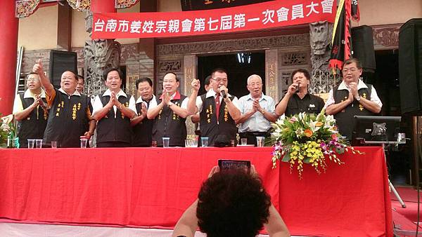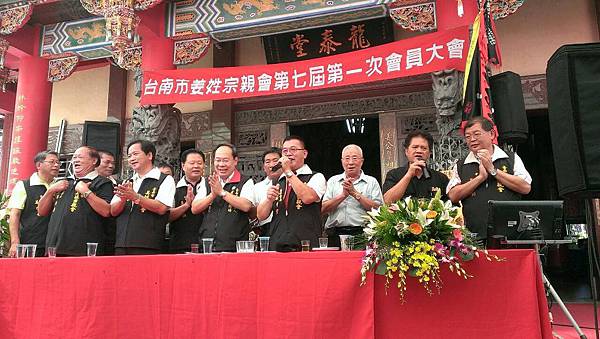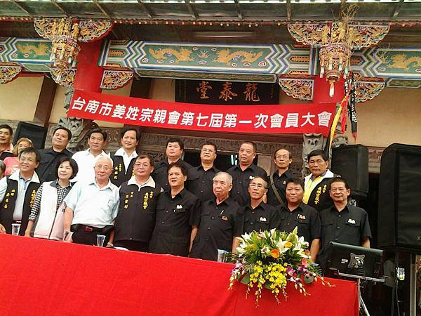 8/30/2014北、南宗親齊聚於下營公學角姜林姓龍泰堂,著制服,有天水堂logo識別。