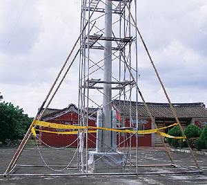 旗桿+旗竿+石筆+考生在中舉人及中進士時,由官方賜銀在其宅第前或村落大廟前立旗杆。旗杆有木或石製上有旗斗,代表公認功名。竹北市六家問禮堂約2008年時剩旗桿基座,現在2014年連旗桿基座都不見了 @ 姜朝鳳宗族 :: 痞客邦 PIXNET :: - http://goo.gl/6DagnM