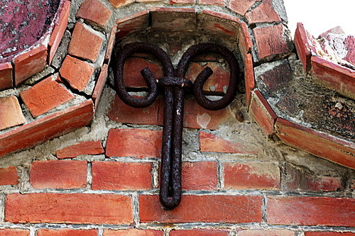 指山牆上S形的鐵構件。據說是傳自荷蘭的建築手法,具有固定橫樑的功能,同時也有裝飾、辟邪的作用。