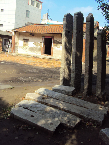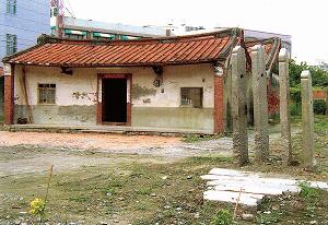 古厝目前已嚴重破敗不堪維護,大埕中樹立的旗竿座也已東倒西歪, 教人看了真不免要欷噓.......