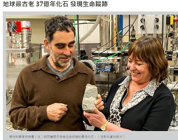 科學家分析在格陵蘭島上取得、具37億年歷史的岩石後,發現有生命存在的蹤影,是人類迄今發現地球最古老的化石。若進一步分析確認,將使地球生命存在的歷史向前推移。