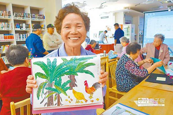 星期四早上8點45分,寧靜的台東池上鄉圖書館陸陸續續傳出人聲,「老師,這是我這禮拜在家畫的」、「我把畫放在FB,孫女按讚」、「老師,今天要畫什麼?」熱絡的話語溫暖了冬日的清晨。9點一到,交談聲立刻停歇,老師發下色紙說明今天要畫聖誕卡片,一雙雙熱切的眼睛專注著聽著梁錦貞老師解說,她們是池上樂齡繪畫班學生(見上圖,黃麗如攝),全台最高齡的繪畫班之一,也是台灣最高齡出畫冊、辦畫展的繪畫班。