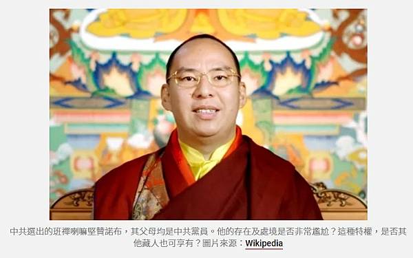 中共選出的班禪喇嘛堅贊諾布,其父母均是中共黨員。他的存在及處境是否非常尷尬?這種特權,是否其他藏人也可享有?圖片來源:Wikipedia