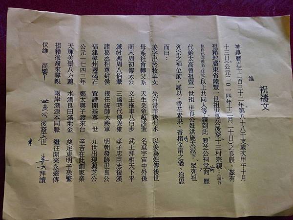 2015年東明姜姓祠堂秋祭/一世族世良公九世祖姜姓宗祠一百零四年國歷九月二十七日農曆八月十五日星期日為東明姜姓舉行秋祭祭祖大典