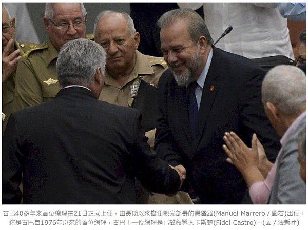 古巴40多年來首位總理在21日正式上任,由長期以來擔任觀光部長的馬雷羅(Manuel Marrero/圖右)出任。這是古巴自1976年以來的首位總理,古巴上一位總理是已故領導人卡斯楚(Fidel Castro) https://is.gd/z04jQF