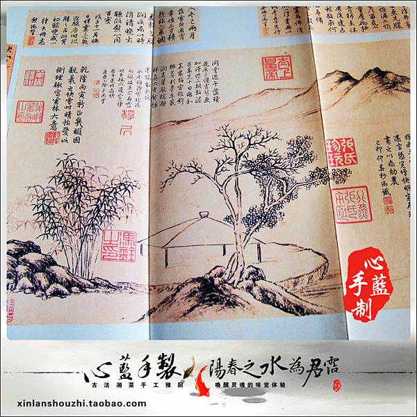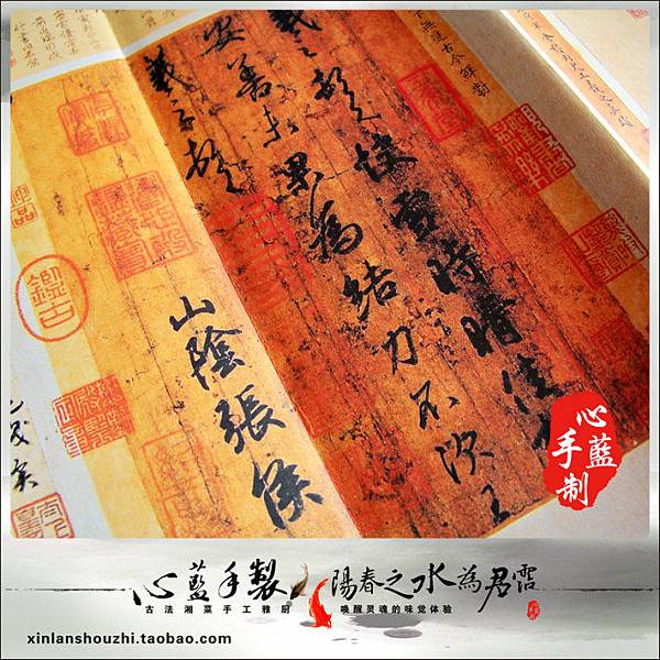 真正的主題只佔全部約全長的三十分之一長,其他都是眾人在臨摹版(非真蹟)旁的落款、題字、繪畫再加上珠色蓋印,