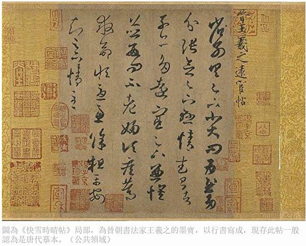 (PS乾隆是個文物破壞狂,某天某夜觀賞《快雪時晴帖》時,居然情不自禁地拿起印章,找到中間空白處戳了下去,之後還覺得不過癮,又拿172種不同類型的印章,一股腦兒地蓋在一千四百年前的古文物上‧‧‧‧‧‧) 歷史說書人》王羲之:我的字怎麼那麼美? - 自由電子報 自由評論網
