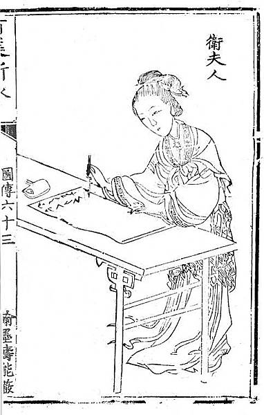 衛鑠(衛夫人)圖像,來自《百美新詠圖傳》。(維基共享)