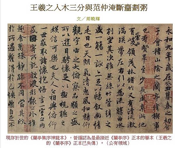 《蘭亭集序》之所以有名,不僅是因為王羲之寫書法寫得很好看,而是他的文章內涵,他能夠把這些複雜的情感都融入在文字之中,使千百年後的我們重新觀賞之際,仍能觸動心中最深的那條感觸。