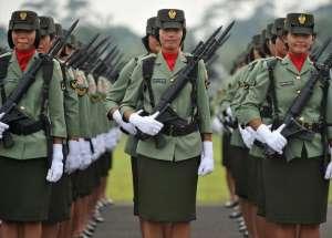 印尼武裝部隊新聞發言人福阿德·巴西亞少校說,「貞潔測試」牽涉印尼的國家安全(圖為印尼女兵資料照片)。