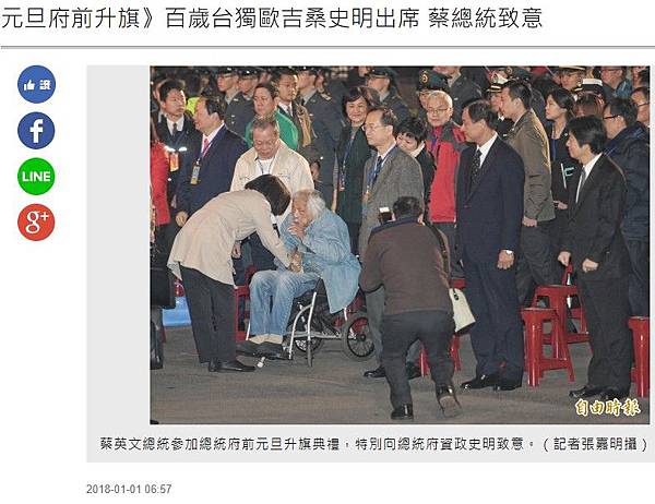 元旦府前升旗》百歲台獨歐吉桑史明出席 蔡總統致意 - 政治 - 自由時報電子報 - https://goo.gl/9Efzrm