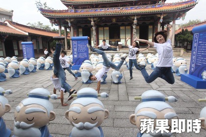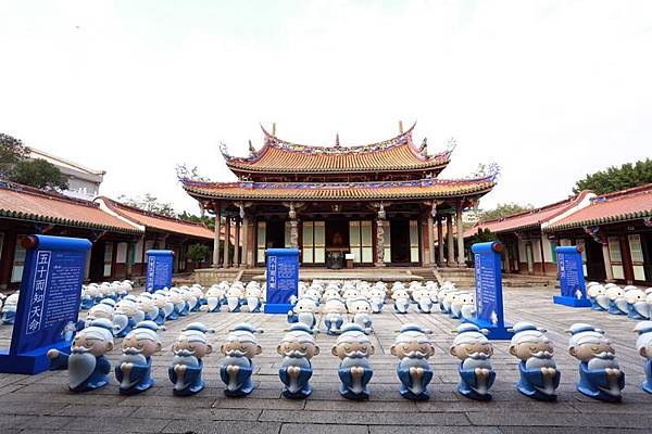 Hello Kongzi全球公益巡展台灣站今起在台北孔廟開展,萬世師表孔子化身問好、作揖與拂鬚三種形象的半身公仔,布置在孔廟廣場,傳達孔子智慧老人形象及對禮的重視,希望民眾觀看可愛孔子形象之餘,也能吸取其智慧。