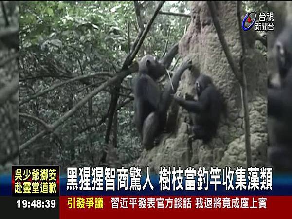 黑猩猩智商驚人 樹枝當釣竿收集藻類
