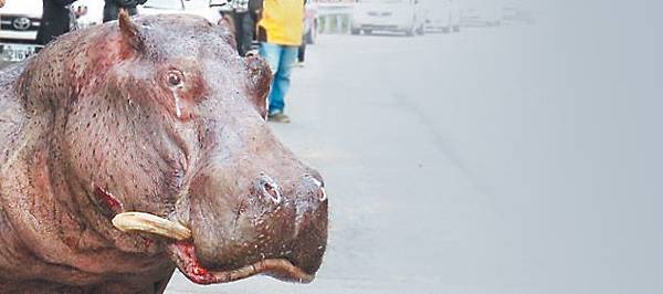 因河馬剛好倒臥苑裡鎮黃姓鎮民住家前,甚至掙扎時還撞到黃姓鎮民的轎車,讓車後留下血跡。