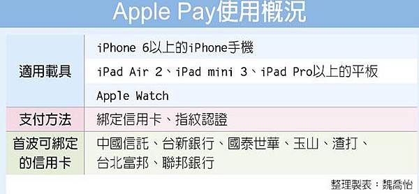 至於不是使用iPhone的其他手機族也不用擔心,因為金管會去年已同步放行Apple Pay、Samsung Pay和Google Pay等3大國際行動支付,據了解,像中信、台新、花旗等銀行與Samsung Pay、Google Pay都積極接洽規劃中,預計最快今年5月就會陸續上線。