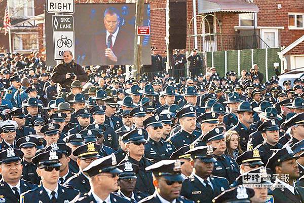 一周前遭槍殺的紐約市警察拉莫斯喪禮,27日在皇后區基督會幕教堂舉行,全美各地逾2萬名警察和執法人員出席,不少民眾也來送他最後一程。紐約市長白思豪致悼詞時,數百名員警轉身背對戶外轉播的大螢幕,對他表達無言的抗議。