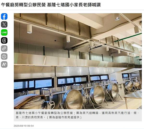 "午餐廚房轉型公辦民營 基隆七堵國小家長老師喊讚 - 生活 - 自由時報電子報" https://news.ltn.com.tw/news/life/breakingnews/5148502