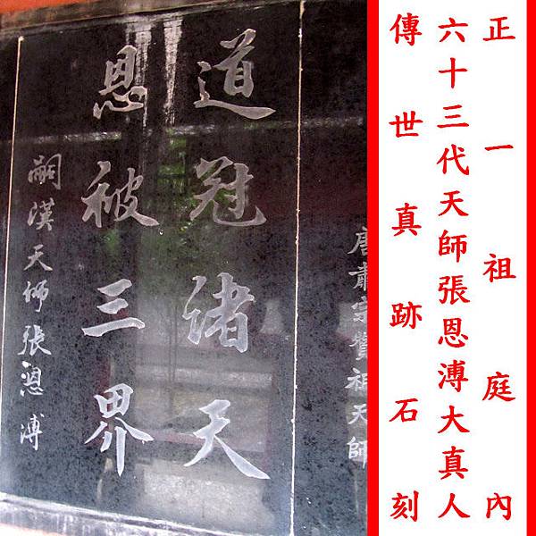 六十三代天師張恩溥大真人傳世真跡石刻石板上寫著第63個天師的對聯