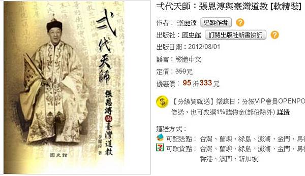 3.李麗涼,《弌代天師:張恩溥與臺灣道教》,臺北:國史館,2012。