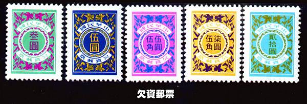 早期郵局投遞信件時經常發現有寄信人信封上未貼郵票就投入郵筒,這種情形發生原因概略有二種:一、如果全額不貼就投入郵筒即可能心急而忘了,二、如果有貼但金額不足即可能寄信人算錯,也可能故意耍賴貪便宜。按寄一封信的郵資費率計算相當複雜非寄信人所能熟諳,費率計有重量、平信與掛號、掛號又有單掛號雙掛號之分,普通信與限時專送之分,寄國外的郵件除與國內相同之外但費率卻另有計算法,例如有水陸或航空之分、真是多如牛毛,指不勝數,光重量之換算費率就分段而異,所以寄信人都主動到郵局交郵局代算郵資,但如果已下班時間的話也有人乾脆貼一點郵票就丟進郵筒希望老花眼的郵差看走眼能Pass過去吧!如果是這樣的話那你就太小覷郵差的敏銳眼光了,少一毛錢都欠資郵票跑不掉的喔!如果郵差真的發現沒有貼郵票或郵資不足的話怎麼辦呢?這種郵件稱為「欠資郵件」,按郵政規則規定欠資郵件是向收件人收取欠資的,而不會退回寄件人的,原因是如果退回寄件人但寄件人不想寄了的話郵差等於做白工的賠本生意,二、為不延誤信件投遞寧可前進不可倒退,所以照常送到收件人,但欠資要有證明才能讓收信人甘服並願代付,所以郵政總局才會發行一種郵差專用的而不是寄信人寄信用的郵票稱為「欠資郵票」,這種欠資郵票是讓郵差在發信局內先貼在信封上然後送到收件人要錢,所以我們一般人很少機會見識到這種郵票,只有集郵人士可以按面額購買珍藏,欠資郵票是常態性發行的,這種郵票一樣可在集郵市場上交易流通的標的物,本文發表的欠資郵票是民國七十七年四月一日繼七十三年版本再發行的。