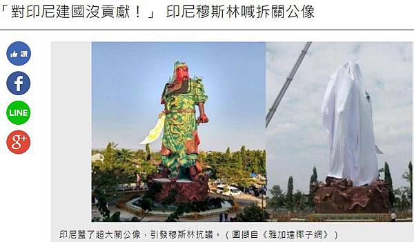 分享「對印尼建國沒貢獻!」 印尼穆斯林喊拆關公像到Facebook 分享「對印尼建國沒貢獻!」 印尼穆斯林喊拆關公像到Line 分享「對印尼建國沒貢獻!」 印尼穆斯林喊拆關公像到Google+