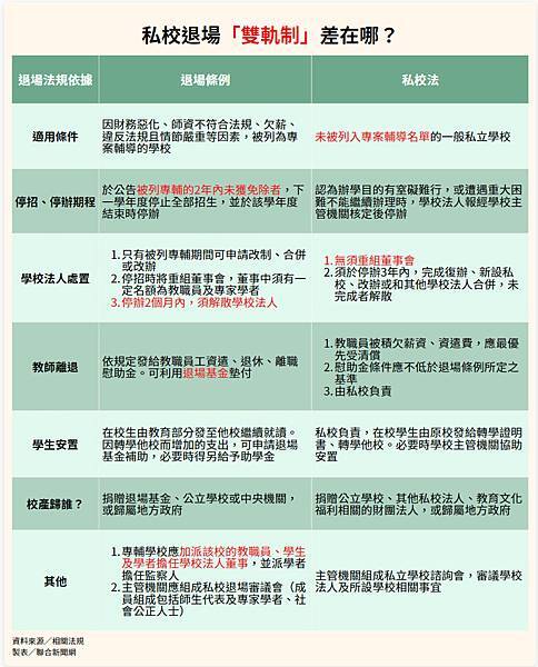 而近日有部分學校退場,導致老師討無欠薪,張秋元說,這次修法,也要求私校全體董事對於學校財務未支付的部分須負連帶責任,並訂下罰則,若違反條例,可罰10到50萬元,並得連續裁罰,上述其他規定,如違法也能對私校進行裁罰,達到嚇阻效果提升整體教育環境。