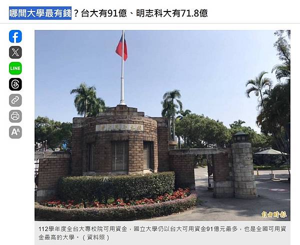 哪間大學最有錢?台大有91億、明志科大有71.8億 - 生活 - 自由時報電子報