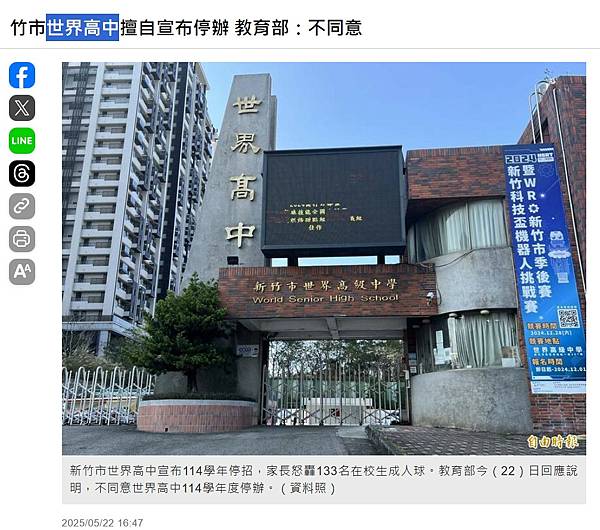 竹市世界高中擅自宣布停辦 教育部:不同意 - 生活 - 自由時報電子報 https://bit.ly/3FvVCGJ