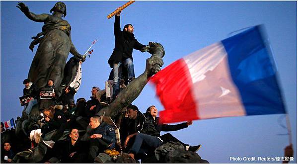 巴黎《查理週刊》(Charlie Hebdo)與猶太教食品(kosher)超市遭遇恐怖攻擊,17位無辜者的屍體與鮮血,促成法國政府策劃「共和遊行」,在1月11日巴黎150萬人走上街頭,40餘國重量級元首共襄盛舉,大家一起高喊:我們無懼暴力、我們要對抗恐怖主義、我們要捍衛言論自由、我們都是查理!