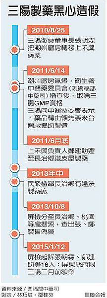 中醫藥司稽查人員說,三陽製藥是四十年以上中藥廠,員工不超過十人,但負責人張朝霖的管理有問題,尤其財務出狀況後,每次稽查都發現缺失,但改善後可通過查核,是中央及地方的頭痛藥廠。