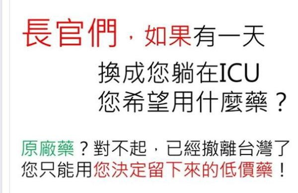 如果主政者或是醫院管理者還是無感,我最後只能再問一句:「長官們,如果有一天,換成您躺在ICU,您希望用什麼藥?」