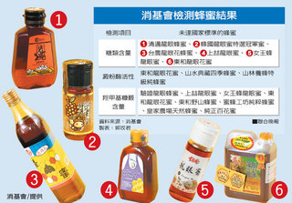 消基會今天公布抽查市售30款蜂蜜結果,多達14款不符國家標準及食品標示規定,不合格率達46%。其中多款有疑慮的蜂蜜購自大潤發、愛買、家樂福等知名賣場,消基會呼籲建立把關機制。