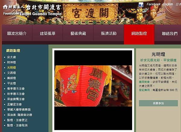 關渡宮:網路點燈 - https://goo.gl/DrSHHW
