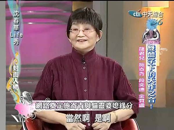 先從大家最為熟悉的施寄青說起,她的驚人之舉太多了,因而有許多的頭銜,包括「離婚教主」「名牌老媽」「麻辣鮮師」「總統候選人」「減肥維納斯」「通靈終結者」等等。