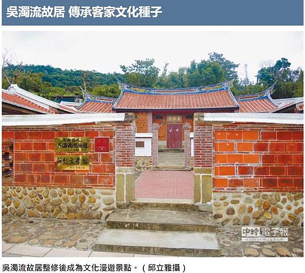 文學家吳濁流故居位在新竹縣新埔鎮,2009年登錄為歷史建築,該處是傳統三合院建築,因損害嚴重,新竹縣政府耗資近3500萬元修復,保留客家傳統建築,並搭配鎮公所「3街6巷9宗祠」計畫,如今成為當地文化漫遊景點之一。
