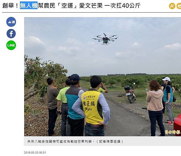 分享創舉!無人機幫農民「空運」愛文芒果 一次扛40公斤到Facebook 分享創舉!無人機幫農民「空運」愛文芒果 一次扛40公斤