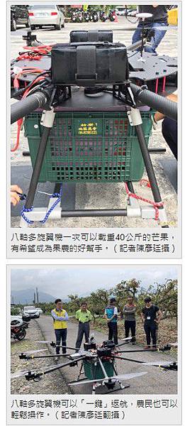 八軸多旋翼機一次可以載重40公斤的芒果,有希望成為果農的好幫手。(記者陳彥廷攝)