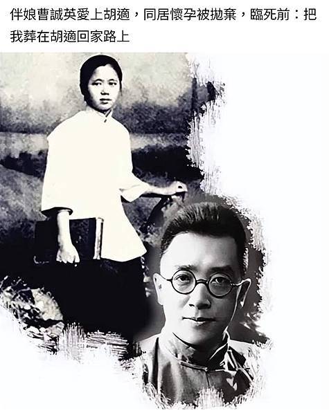 伴娘曹誠英愛上胡適,同居懷孕被拋棄,臨死前:把我葬在胡適回家路上