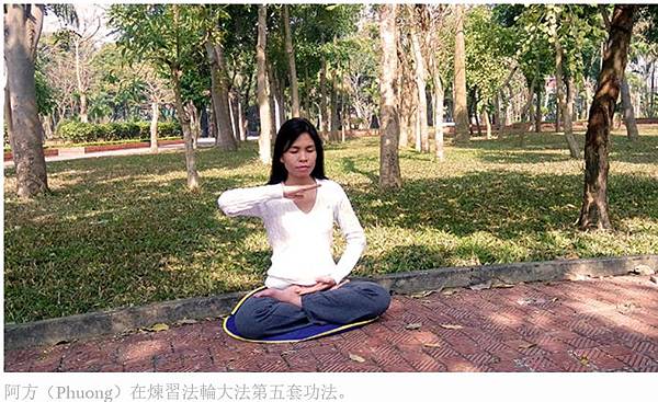 阿方(Phuong)在煉習法輪大法第五套功法。