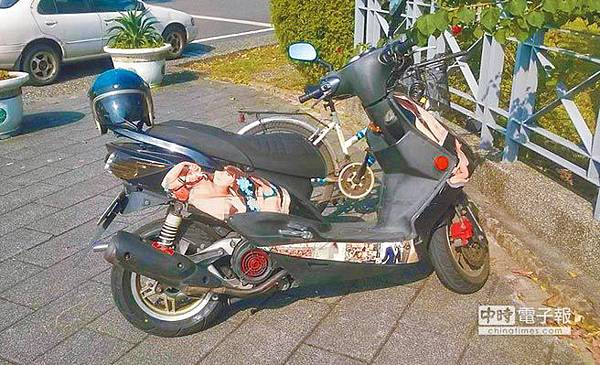宜蘭縣出現一輛車身彩繪日本女星香豔圖的機車,不但上空露點,還出現生殖器媾和畫面,引人側目(讀者提供)。