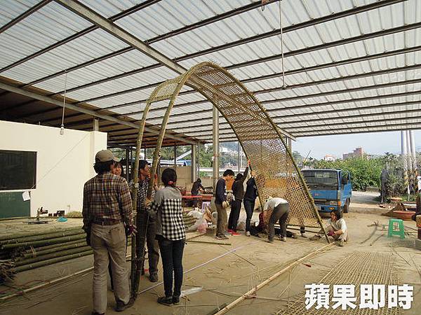 「由於時間緊迫,常常通宵熬夜。」簡志明表示,雖然這次邀請了將近60名學生及志工一起建造,但因為天氣寒冷等因素,常常延誤進度,農民看到大家認真努力的模樣,常常送宵夜和點心來打氣,讓大家備感窩心。(黃羿馨/新竹報導)