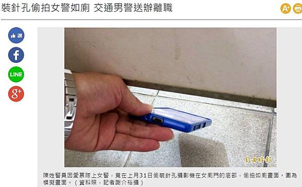 分享裝針孔偷拍女警如廁 交通男警送辦離職到Facebook 分享裝針孔偷拍女警如廁 交通男警送辦離職到Line 分享裝針孔偷拍女警如廁 交通男警送辦離職到Google+