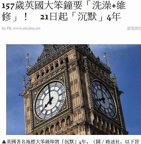 157歲英國大笨鐘要「洗澡+維修」! 21日起「沉默」4年 | ETNEWS國際 | ETNEWS新聞雲 - https://goo.gl/mvXHcW