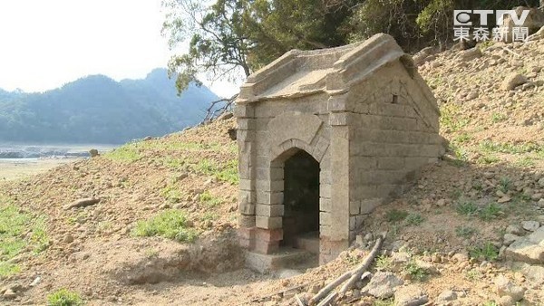 因興建水庫而被淹沒的阿姆坪「土地公廟」,上月已重見天日。(記者李容萍攝)