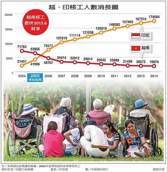 勞動部長陳雄文說,印尼官方這幾年不斷釋出可能停止輸出勞工的消息,我方須積極應變可能的缺工問題;越南是我方重要的外籍看護來源國,加上越南官方嚴懲移工逃逸行為後,行蹤不明情況顯著改善,已可慎重考慮解凍。