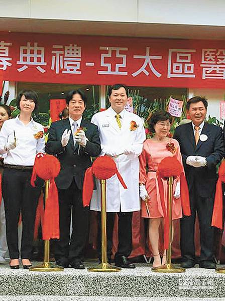 台南市醫師公會理事長王正坤(穿醫師服者),在台南地區相當活躍,不但與市長賴清德(左二)交好,與馬總統也頗有交情。(翻攝自王正坤網頁)