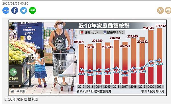 去年每戶家庭平均儲蓄27.4萬 創歷年次高 https://bit.ly/3EdDzkz