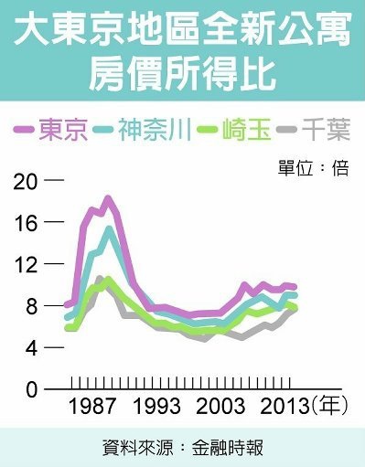 大東京地區全新公寓房價所得比 資料來源:金融時報